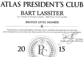 Bart Lassiter achieved Atlas President’s Club status as a Bronze Level Member. This is a remarkable achievement and does not come easy. Awards are based on total transportation revenues for interstate shipments.